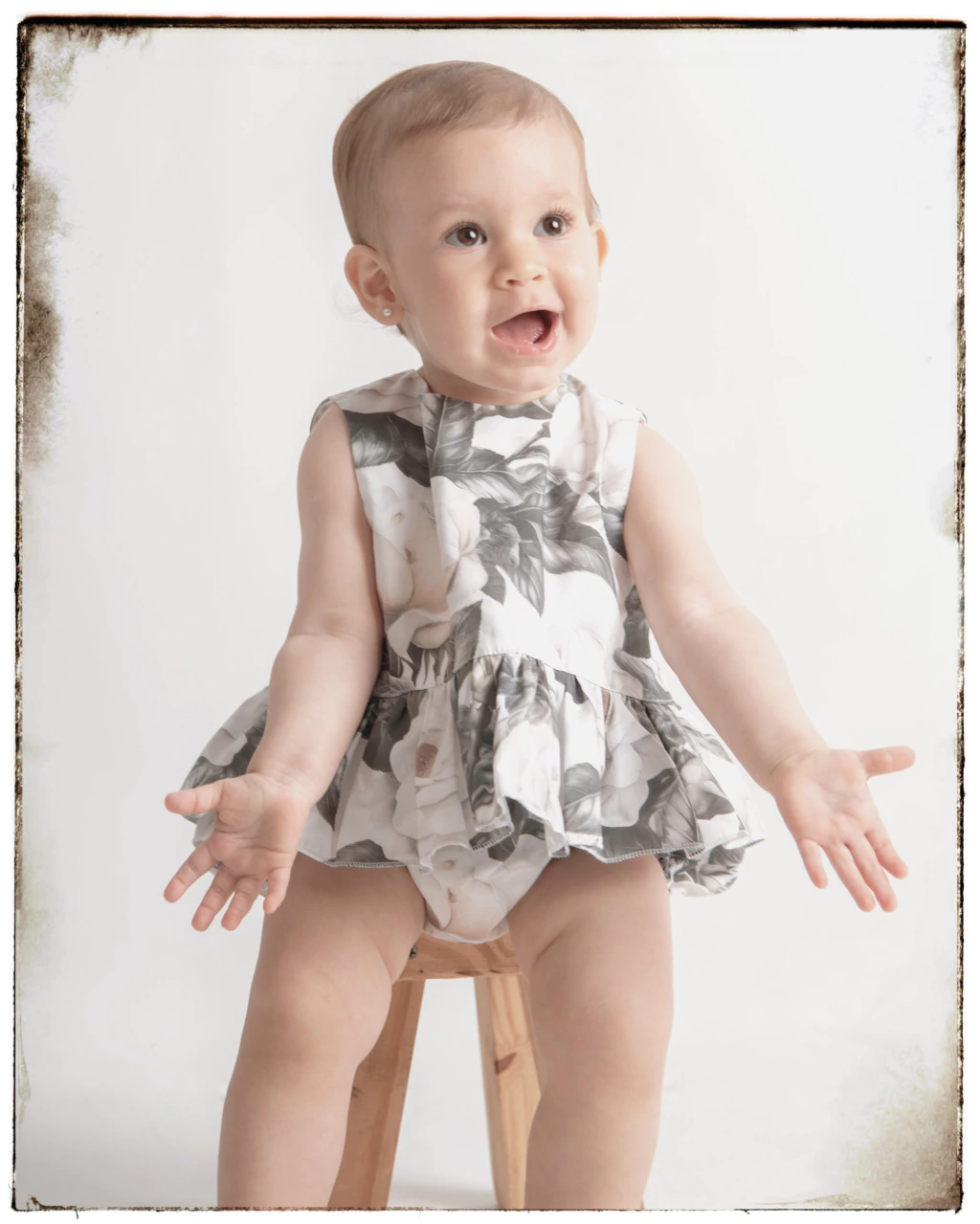 Blusa creada en poplin 100% algodon, en un estampado autentico, y forrada en voile de algodon, con espalda cruzada, voladitos y broche de perla. Un detalle dulce para crear conjuntos encantadores.